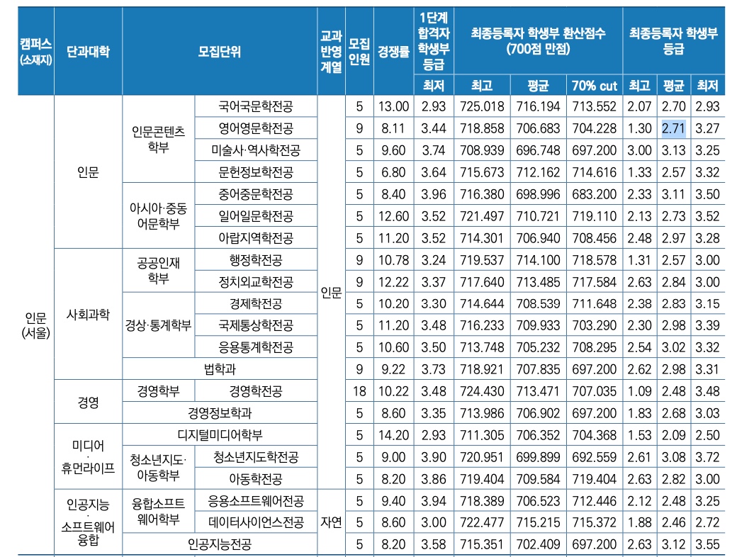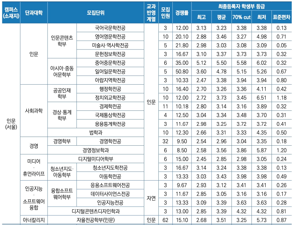 그리고, 이문계열 (서울 캠퍼스) 중심으로 다루었습니다.